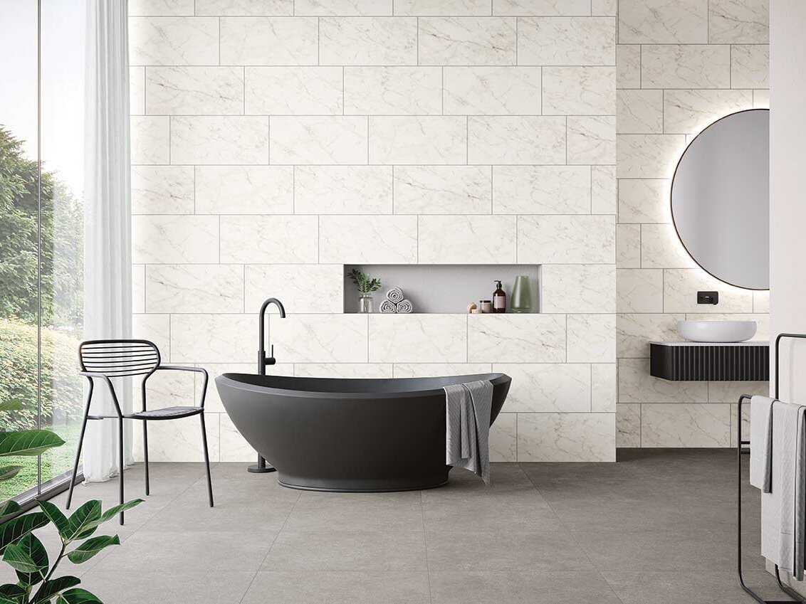 Die Wirkung von Räumen lässt sich durch den Einsatz von dunklen und hellen Farben beeeinflussen. Zusätzlich lassen sich Raumproportionen gezielt durch die Auswahl passender Fliesen verändern.