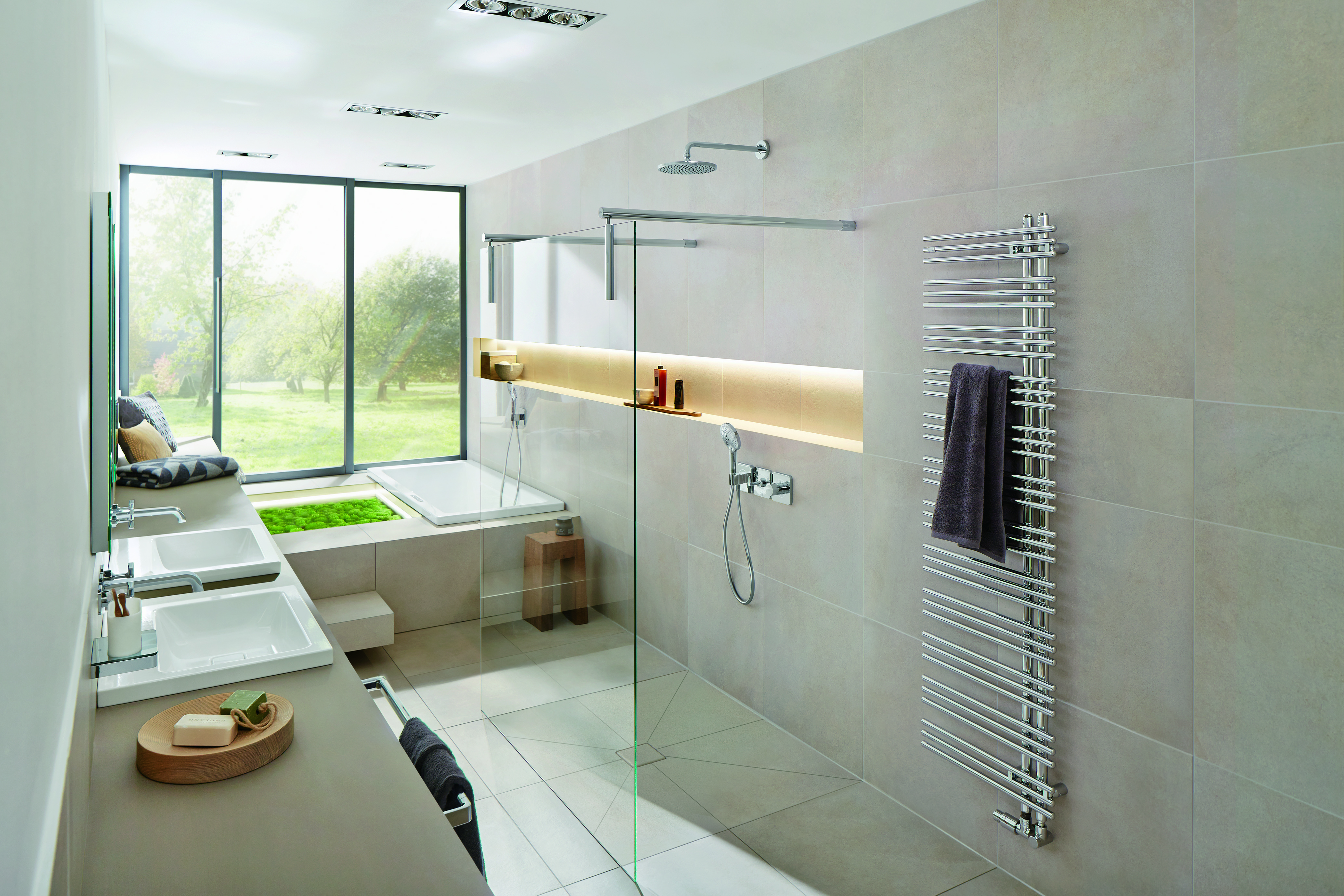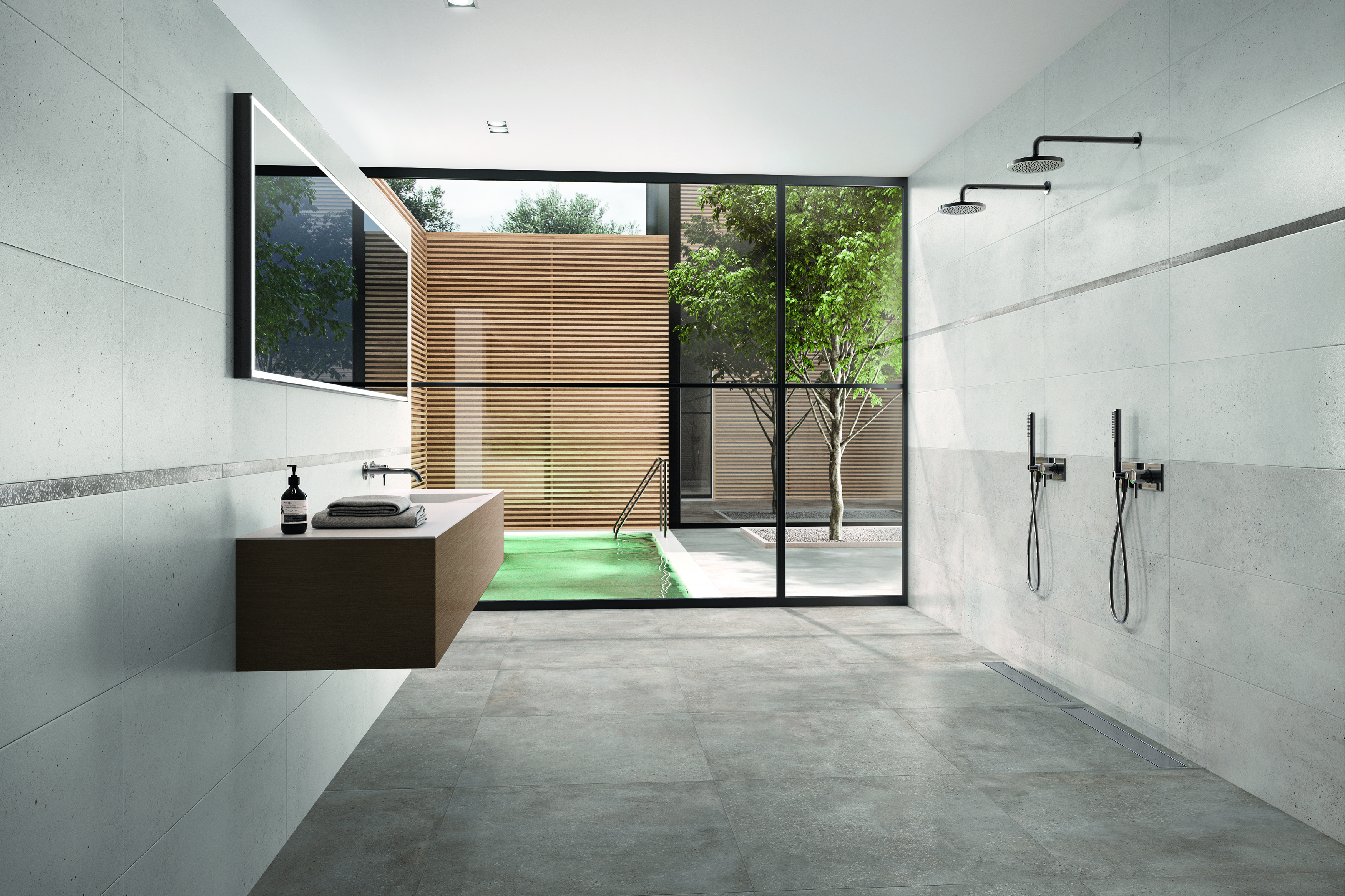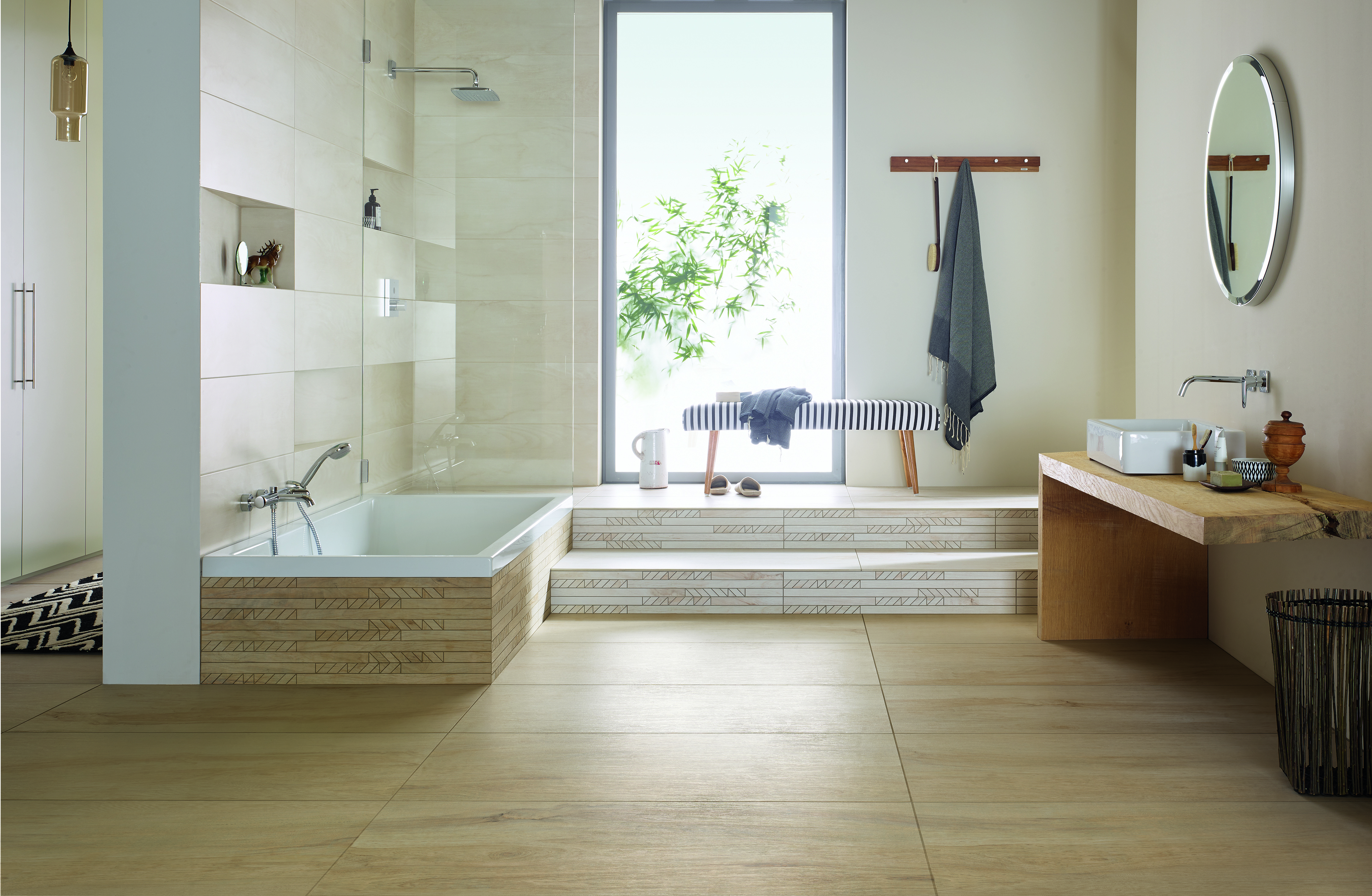 Zeitlose Eleganz und klassische Moderne kommen nie aus der Mode. Das Fliesendesign liefert dazu die stilistisch passenden, zurückhaltenden Farben wie Sand- und Beigetöne, aber auch das gesamte Spektrum von Hellgrau bis Anthrazit. Eine großzügige Raumanmutung erzielen die neuen XL oder XXL-Formate, bei der Wandgestaltung stehen zeitlose organische oder geometrische Dekore zur Wahl. Die Konzentration auf wenige, hochwertige Materialien erzielt eine ebenso harmonische wie repräsentative Gesamtanmutung des Badezimmers. Ideal eignen sich dafür beispielsweise die sogenannten „Wand-Boden-Konzepte“, die eine homogene Gestaltung der Wand- und Bodenflächen ermöglichen. Mit Volldekoren oder den sogenannten „Schnittdekoren“, die farblich und in ihrer Oberflächengestaltung abgestimmt sind auf die jeweiligen Wand- und Bodenfliesen, lassen sich Flächen optisch akzentuieren oder Funktionsbereiche betonen.
